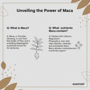Elevate your daily wellness routine with Mansphere Triple Blend Maca Powder – nature’s powerhouse for the entire family. Known as the Peruvian Ginseng, this root from the Andes has been celebrated for centuries for its adaptogenic properties. Our Maca powder delivers a potent mix of Calcium, Magnesium, Phosphorus, Iron, essential vitamins, minerals, and antioxidants, making it a premium superfood to support energy, vitality, and overall health.